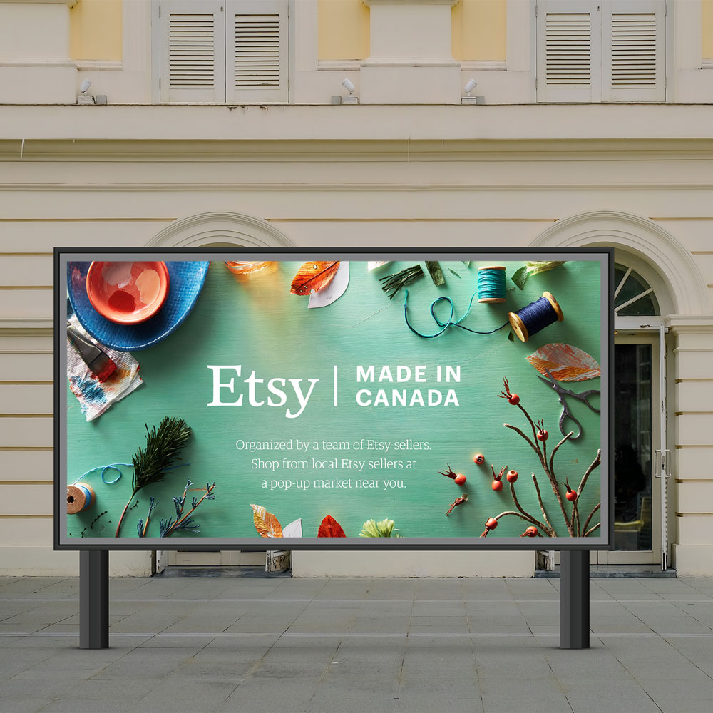 Etsy global came to us for this exciting art direction and production project. The brief included a print and digital marketing materials that appealed to Etsy shop owners and customers alike to promote a series of craft markets worldwide. It needed to hint at the holiday season without it being overtly winter since it would appear globally in various countries and cultures. We created a concept that included commissioning a real Etsy seller to bring us into their process of creating seasonal paper plants, pinecones and even a pomegranete. Etsy was so thrilled that they lisensced the campaign to use the following year.