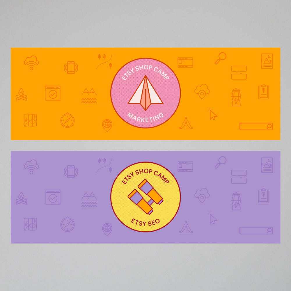If it’s one thing we love it’s repeat clients. Etsy Germany came to us to design a series of marketing visuals for their shop training program for their shop owners. We used iconic camping iconography as inspiration and created a series of sophisticated marketing collateral.