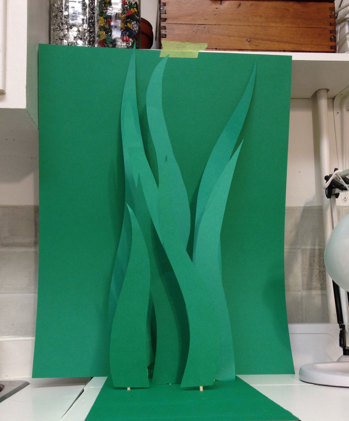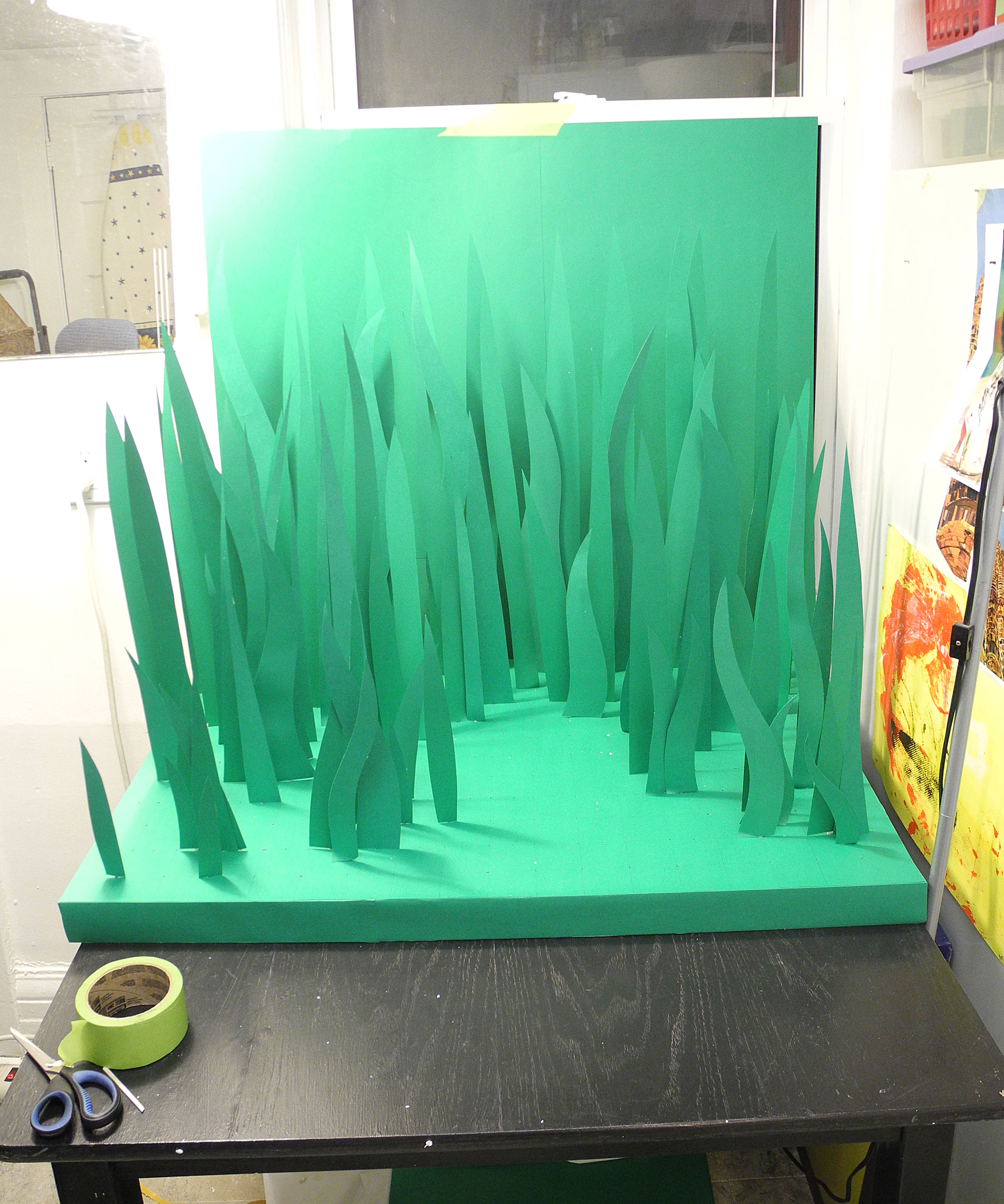 A set design of paper grass was created and built in collaboration with Hazel Eckert. We pulled this set together in record time—and it was a treat to see our work alongside anything Mui Mui.